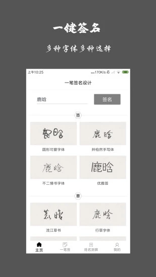 商务签名、一笔签名、潇洒签名、公文签名、书法签名、卡通签名等各类艺术字体签名,这里一应俱全。