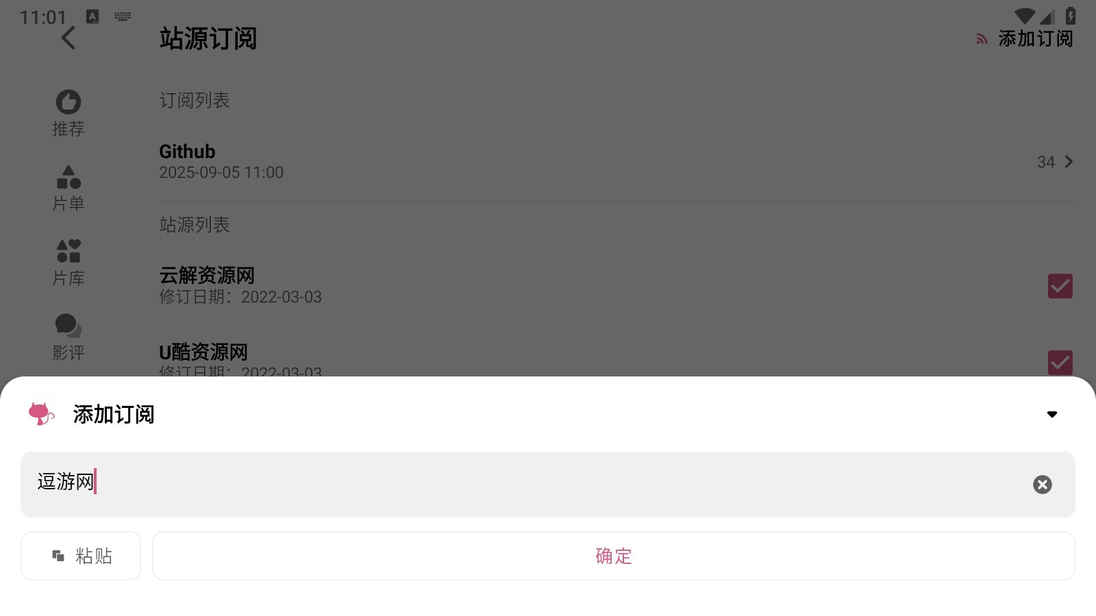 7.点击站源订阅按钮,此外还支持自定义添加本地的影视源。