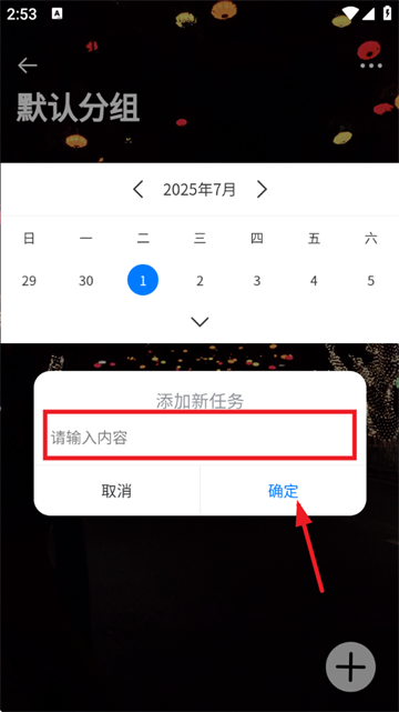 2、选择日期,输入任务名称,点击确定