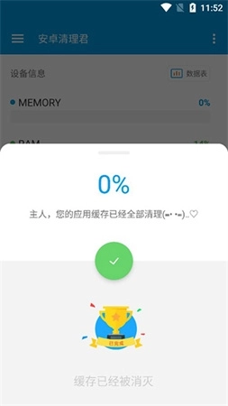 5、如下图所示,已成功清理所有应用缓存,让你的手机运行更为流畅。
