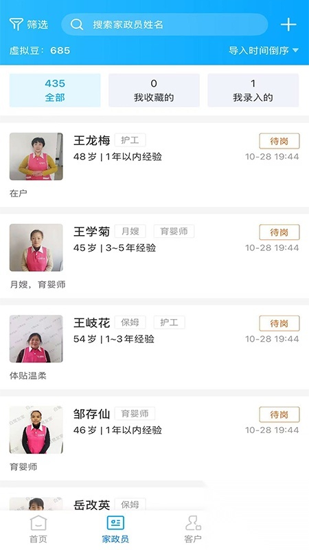 1、支持通过远程视频的方式对家政求职人员进行面试,无需线下面对面交流,能快速筛选出合适的家政员工。