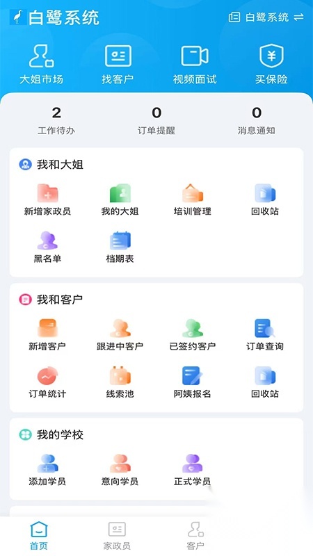 白鹭系统作为一款优质的家政管理办公类手机软件,涵盖了家政员招聘、客户信息管理、订单统计等多个业务环节,能够为用户提供一站式的家政服务办公解决方案。该系统适用于家政公司的日常运营、业务拓展以及数据统计等各类场景,可充分满足家政行业在精细化管理方面的需求。