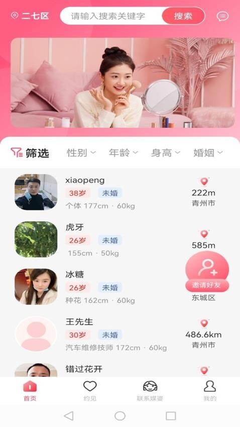 1、无论是安装后、进入首页时,还是日常使用中打开应用,都能随时设置自己的择偶需求;