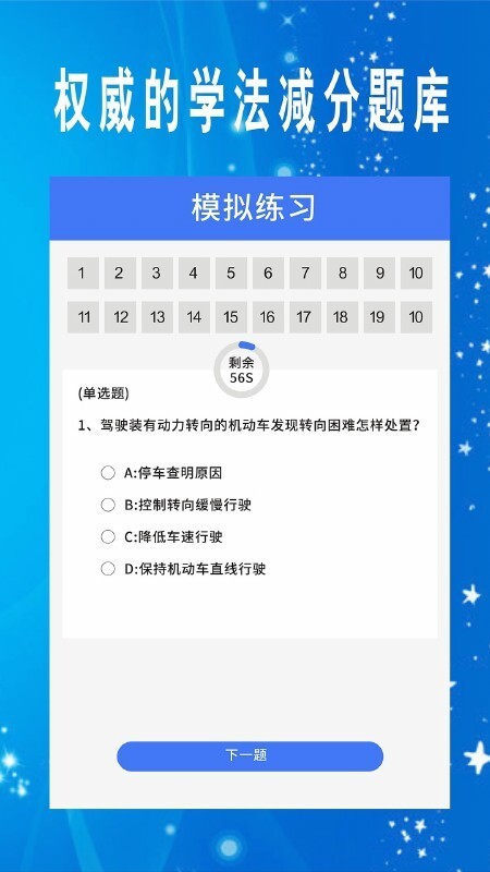 学法减分题库大全免费版以学习减分为核心,为用户提供全面的学习资料和练习题。用户可以通过软件进行在线学习、做题、模拟考试等,提高自己的学习效果和考试通过率。