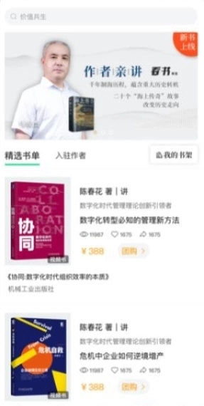 知室书院是上海知到知识数字科技有限公司开发的一款优质在线阅读学习软件,海量实用知识内容,支持用户在线学习各类课程。作为面向企业家及核心高管的知识学习平台,它整合了中国理论与实践兼备的强大师资,汇聚了各行业富有进取精神的优秀管理者,旨在为企业共生构建具备数字化学习能力的企业知识实验室。用户可随时选择所需课程在线学习,便捷掌握企业相关知识、提升专业能力;平台还聚集了众多优秀企业家,方便用户随时在线交流互动。此外,知室书院最新版收录了大量优质企业书籍,用户可随时在线阅读以丰富知识储备。有需要的用户,快来本站体验这款软件吧!