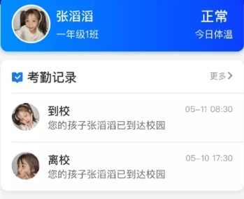 系统会自动记录孩子到校和离校的时间,孩子是否迟到或早退都能清晰查看。