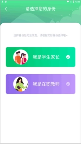 1、先安装好智安校园应用,打开软件后,根据自身情况选择对应的身份——家长或者老师。