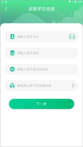 2、若您是家长,需填写学生卡ID、学生姓名、身份证号码以及您与学生的亲属关系。