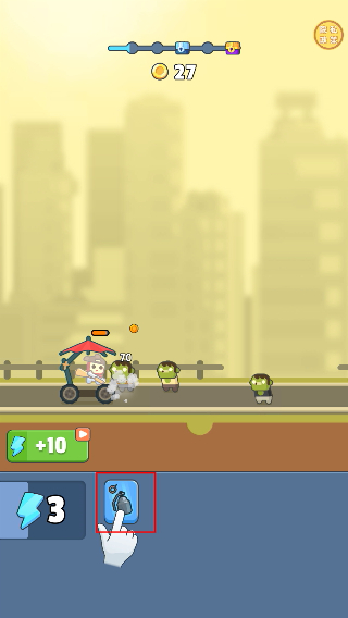 3、点击下方的【道具按钮】来使用道具,攻击前方的僵尸,从而完成击杀操作。