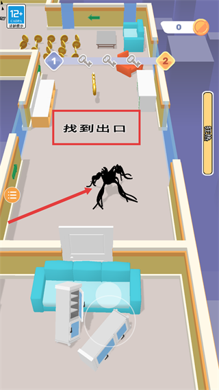 1、进入关卡后,需依据【找到出口】的提示,操控角色躲避怪物,并规划好移动路线。