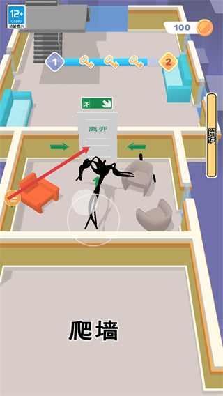 3、找到标注着【离开】字样的出口门,操控角色移动到其附近并进入门内,以此达成当前关卡的逃脱任务。