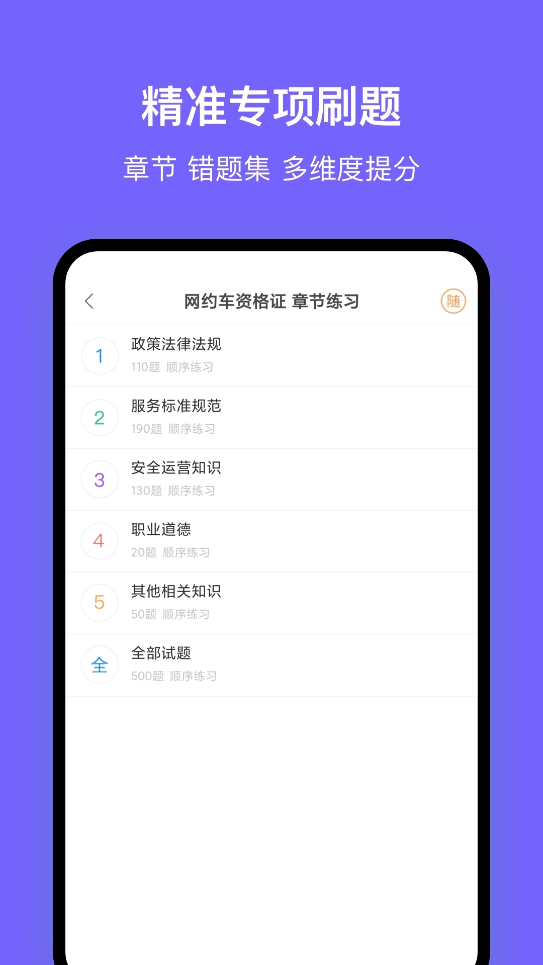 沈阳网约车考试是一款专门为准备参加沈阳市网约车驾驶员从业资格考试的人员打造的学习工具。它整合了海量的题库资源,配备模拟考试、章节练习、错题重做等多样化功能,助力用户全面且高效地备考,堪称网约车司机备考之路上的得力帮手。
