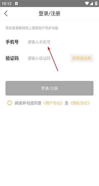 3、进入登录注册页面后,找到手机号验证码输入区域,勾选相关协议,即可填写信息完成登录或注册操作。