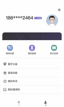 1、个人中心功能栏内容丰富,其中设有我的内容、我的勋章以及积分任务图标;