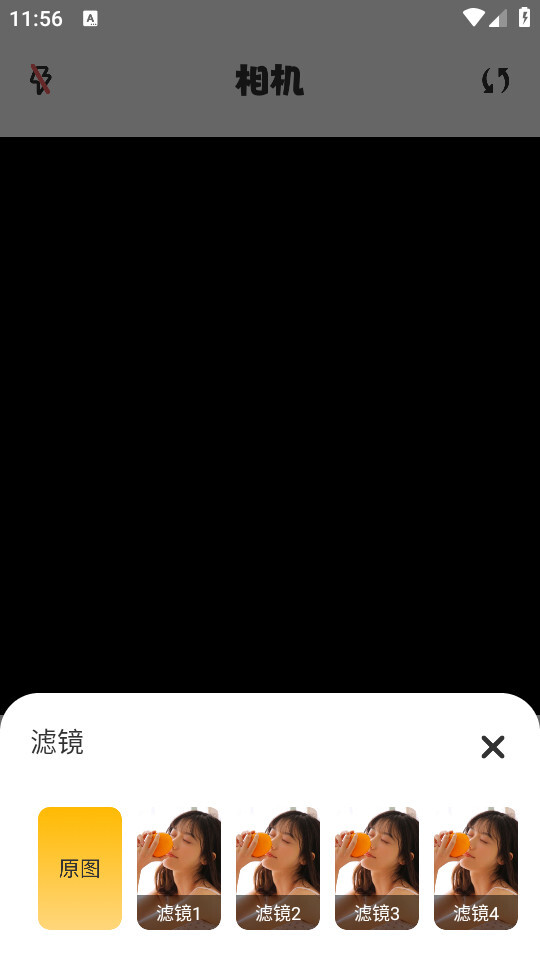 进入玛卡相机后,就能直接进行拍摄操作,界面右侧那个黄色的图标对应的是滤镜功能。