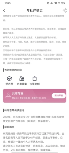 3、下方同时附带了琴社的详细介绍,并且支持琴室预约功能。