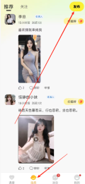 用户打开软件后,在动态页面点击右上角的发布按钮就能直接进行发布操作。