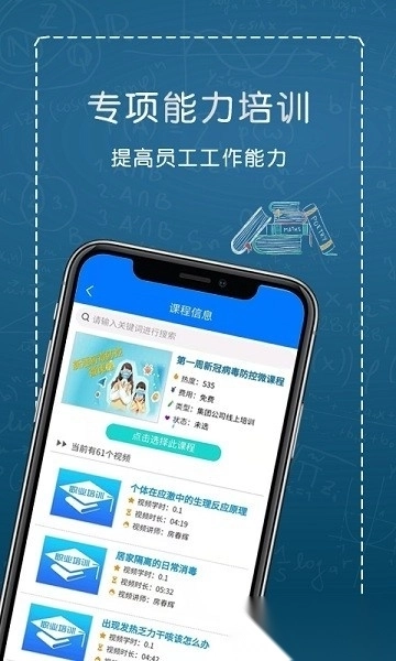 综合培训平台旨在助力全体职工不断提升职业素养与岗位技能,平台配备了丰富的专业知识课程及配套练习题库,能够支持在线练习与考核测评;其应用设计简洁轻便,方便职工随时随地开展学习,从而高效利用碎片化时间。