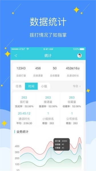 2、全面统计,洞悉全局:通过详尽的数据统计功能,清晰呈现拨打情况,助力您的销售策略更具针对性,决策更有依据。