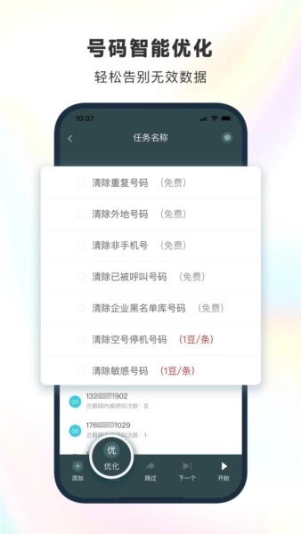 我们会对您添加的手机号码进行优化处理,帮您快速筛选掉各类无效数据