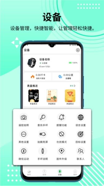 3、包含睡眠统计、血压测量、遥控拍照(借助手环实现拍照功能)以及闹钟设置等功能。