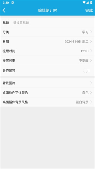 4、填写完毕后,点击右侧上方的“完成”按钮,就能完成倒计时的设置。