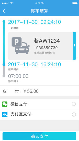 4. 线上缴费:借助软件完成停车费用的支付,可选用支付宝、微信等多种支付渠道。