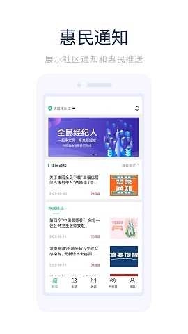 3、惠民通知板块,集中展示社区发布的各类通知公告与惠民服务信息,方便用户获取更丰富的内容。