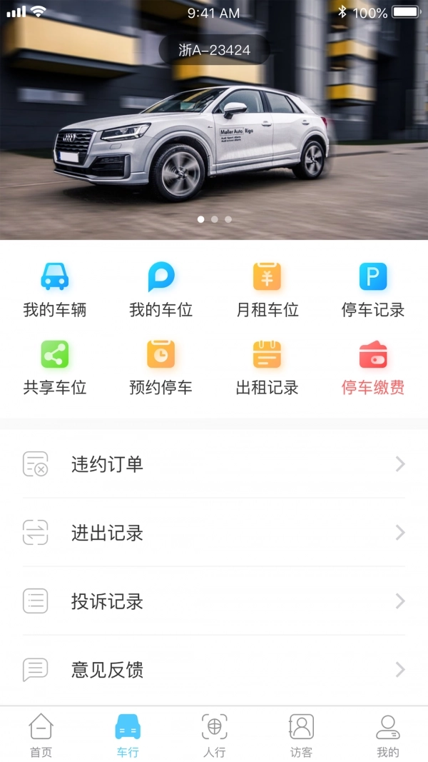 3、返回并切换至车行中心,查看车辆同行服务,点击“预约停车”即可完成在线预约