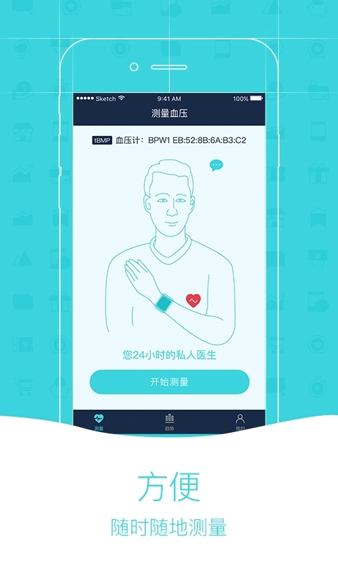 7、借助蓝牙连接血压计、血糖仪、体质仪、运动手环等健康监测设备,对采集到的数据展开分析;