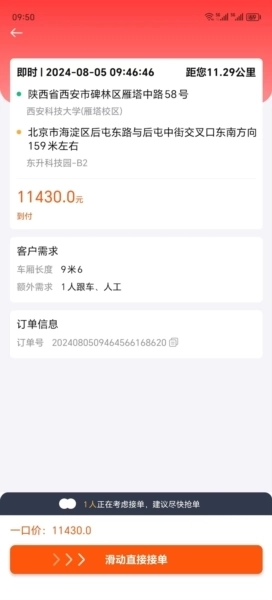 支持在线抢单功能,司机发现合适的订单后,可直接滑动屏幕完成抢单与接单操作。