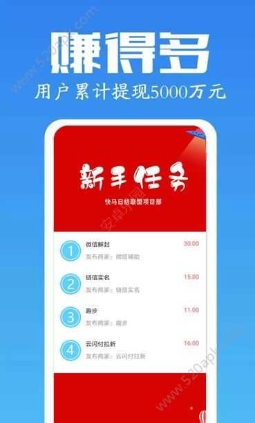 快马日结联盟是一款专注于手机兼职赚钱的移动应用,用户能通过它了解平台上丰富多样的兼职机会,各类赚钱任务持续更新,每个兼职都配有详细说明,多种职位可供选择,用户可随时接单开始工作,日结提现便捷高效。