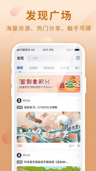 打开和彩云应用,进入首页后点击进入“发现”页面。