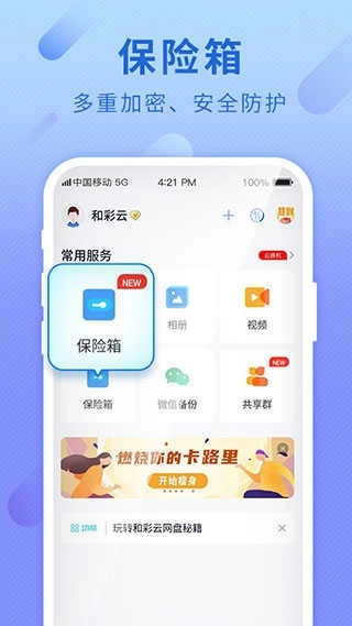 和彩云客户端(和彩云网盘)是一款功能强大的网盘工具,为所有用户提供安全、便捷且高效的个人云存储服务。它拥有大容量存储空间,用户激活后即可使用8T的超大容量,并且能上传任意格式的文件。感兴趣的朋友们,快来体验和彩云客户端(和彩云网盘)吧!