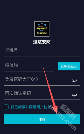 2、填写手机号码与验证码,密码由您自行设定,完成后点击注册按钮即可。