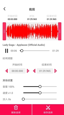 1、音频剪辑:支持从本地音乐库导入音频文件,用户可自行设定剪切区间,针对选定的音频片段开展编辑与制作工作;