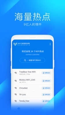 万能wifi极速版是这款软件的特别版本,里面有多种便捷的操作模式,用户能依据自身需求来设置,功能十分全面,而且软件占用的内存不大,还能一键连接公共安全wifi,赶紧来试试万能wifi极速版吧!