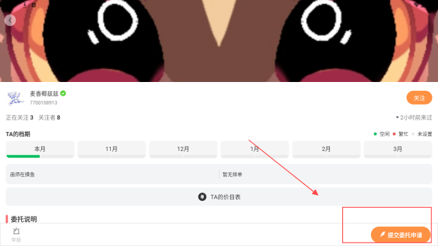 3、挑选出你心仪的画师后,可向其提交委托请求,把你的具体需求与要求(像作品的风格、创作内容等方面)清晰地告知对方。