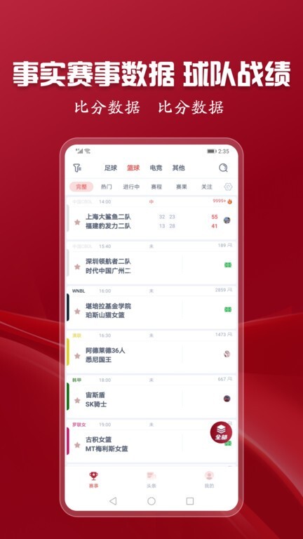 足球、篮球、网球等各类赛事的即时比分数据,助你快速知晓实时赛况;还能统计各大小联赛的比赛数据,让你及时掌握动态走势,更有赛事一键关注提醒功能。