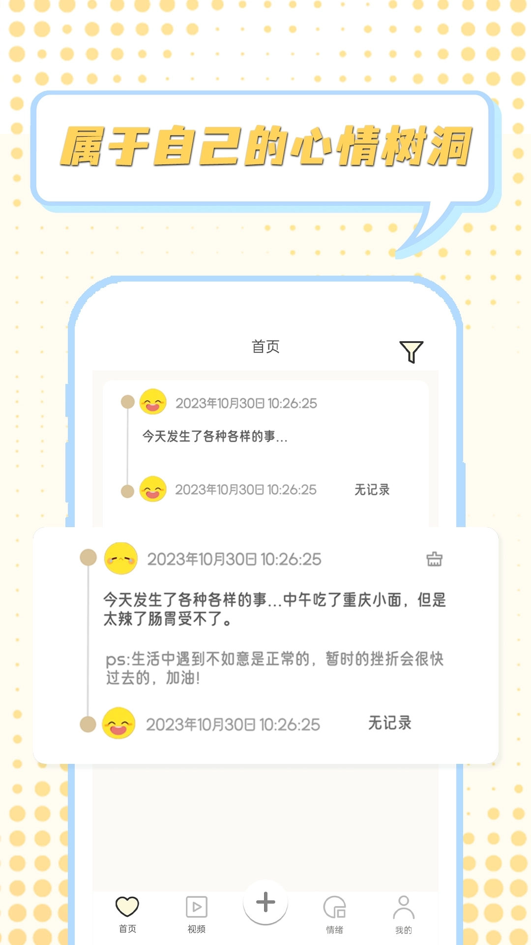 2.为大家提供便捷的情绪记录服务,助你生成专属心情日记。