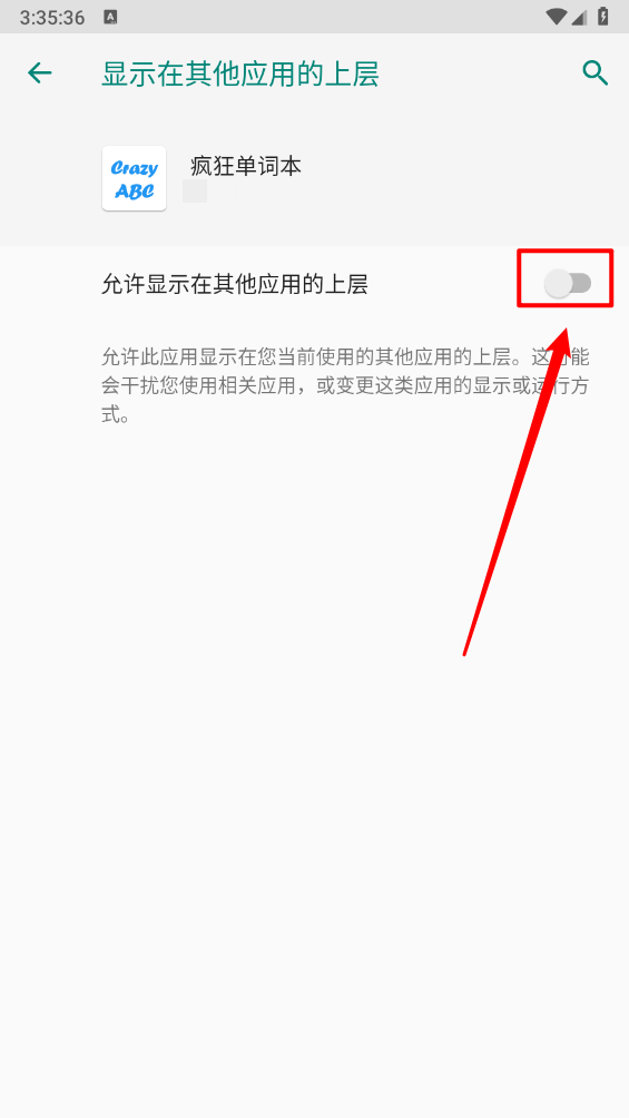 3、打开疯狂单词本的悬浮窗开关后,返回主页。