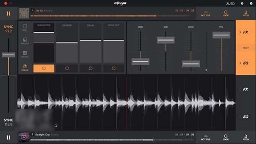 成为DJ从未如此简单快乐!整夜用edjing开启派对模式!在派对上像专业DJ一样混搭歌曲,让朋友们羡慕不已;或是独自尽情舞动,交给edjing自动混搭你的播放列表就好!