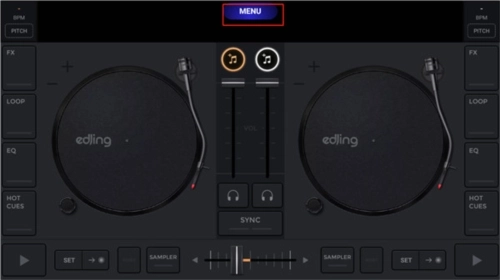 1、打开本站的edjingMix并进入主页,在转盘视图里能看到十分丰富的音乐制作功能,首先我们点击菜单;