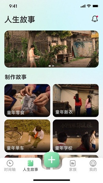 2. 点击下方导航栏里的“人生故事”按钮,进入页面后,能选择推荐、童年回忆等不同分类来浏览相关内容。