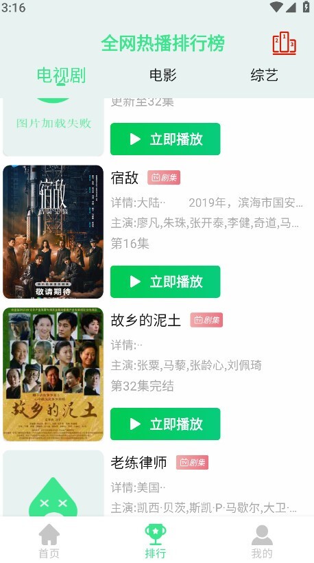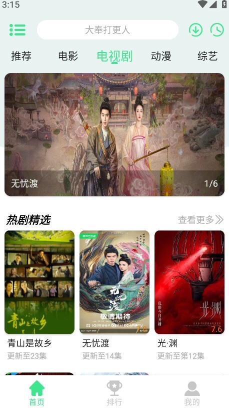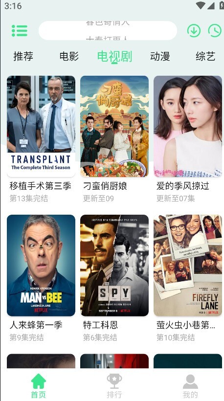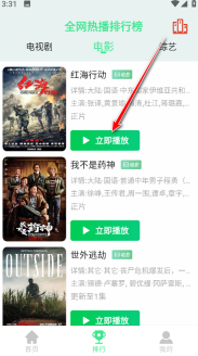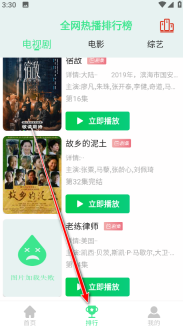 5.回到首页后,点击页面下方的“排行”选项,就能查看全网正在热播的电视剧、电影以及综艺的各类榜单了。