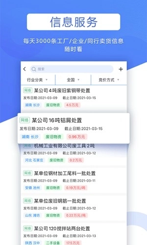 旨在赋能再生资源产业,改变营销、推广及经营方式,为回收企业提供全面及时的物资回收信息。