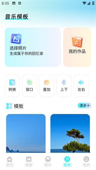 4、在模板页面里,你能够挑选照片来生成专属于自己的回忆录,这里有各式各样的类别可供选择,同时还配备了精彩的音乐模板。