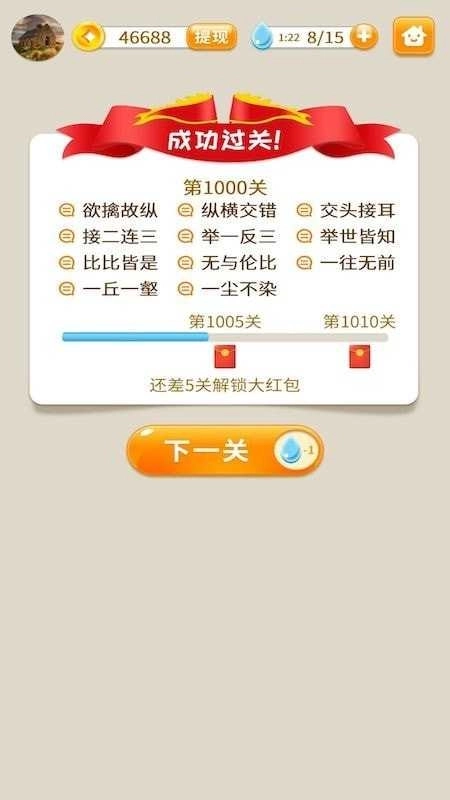3、轻松闯关,完成精彩挑战,这是大家都喜爱的成语接龙猜谜玩法。