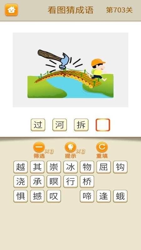 2、补全成语里缺失的部分,参与闯关不仅能学到更多知识,还能体验超烧脑的挑战;