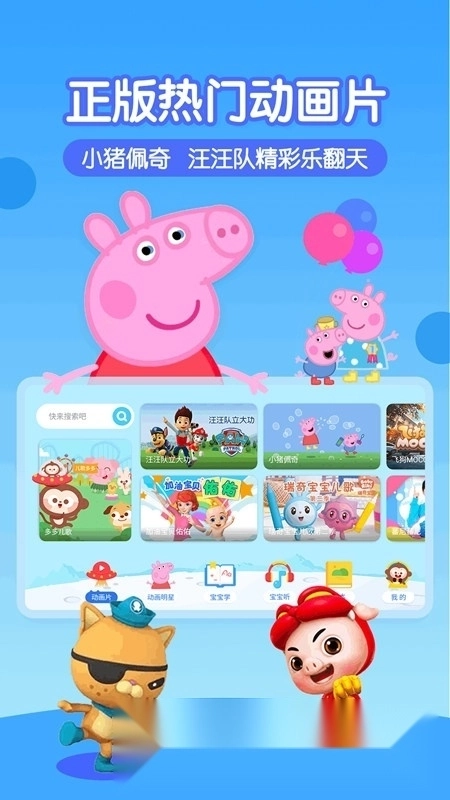2、动画首页新添了搜索栏,能帮助孩子更快速地找到他们想看的儿歌和动画。
